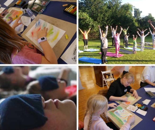 Eftermiddagen igennem skifter vi mellem tegning og yoga – så det bliver en helt særlig og ny oplevelse for alle.