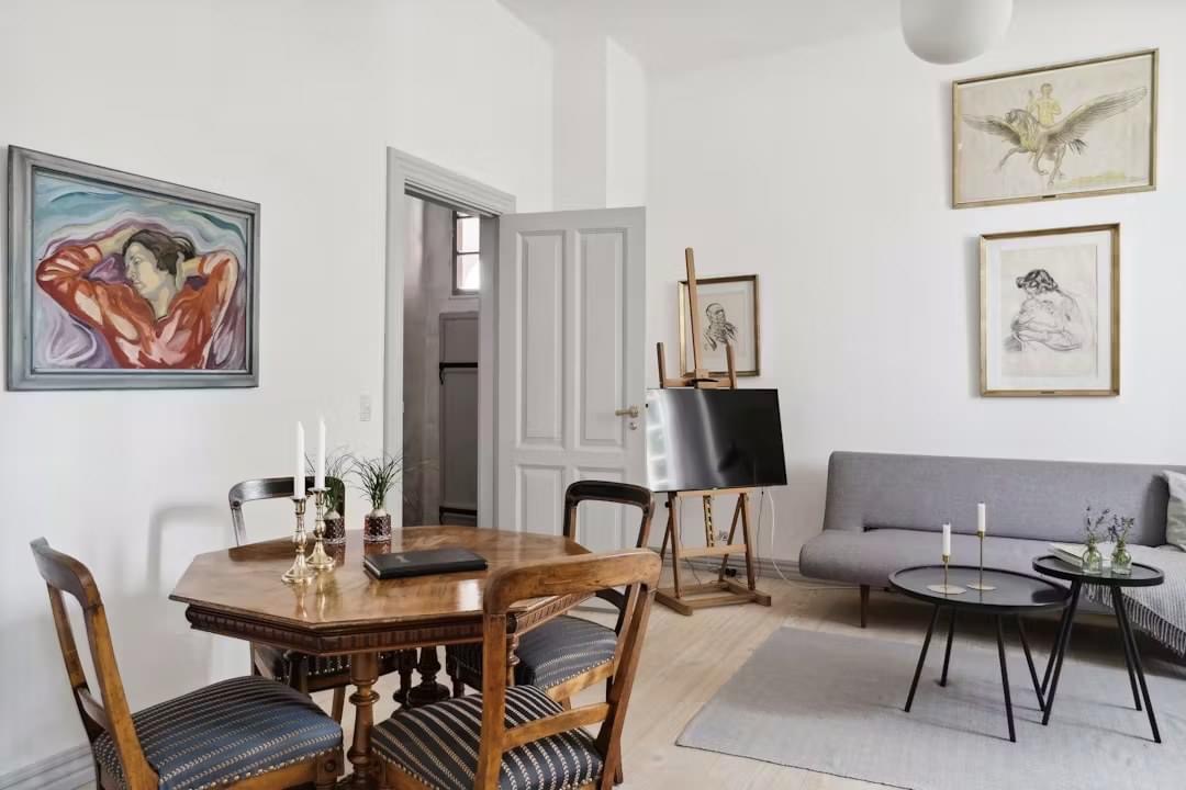 Lejligheden består af en lang entre, en spise-/stue, et badeværelse, et soveværelse og et køkken. Køkkenet er fuldt udstyret med ovn, opvaskemaskine, mikroovn, køleskab/fryser, elkedel, kaffemaskine og fade, gryder og pander. Kaffe og te tilbydes også samt en enkel morgenmad til den første morgen. Badeværelset har bruser, vaskemaskine, tørretumbler (og alle andre standardartikler). Sengelinned, håndklæder og wifi (samt chromecast) er inkluderet.