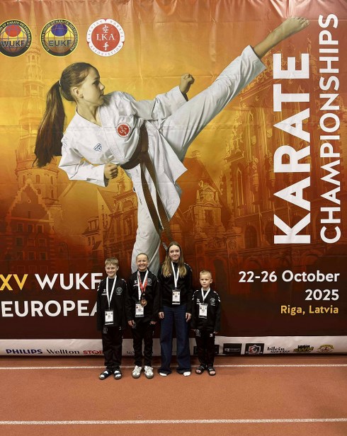 Tokon Hjørring Karate havde fire dygtige kæmpere i aktion ved Europamesterskaberne 2025 i Letland, og de leverede stærke indsatser hele vejen.