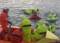 Alle tolv friske drenge fik overlevelsesdragter på og sprang i baljen fra Athenes dæk. Her svømmede de i formationer, som var det synkronsvømning, med vished om at redningsmandskab fra luften lettere ville kunne få øje på dem, uddyber karrierelæringsvejlederen fra Sindal Skoledistrikt.