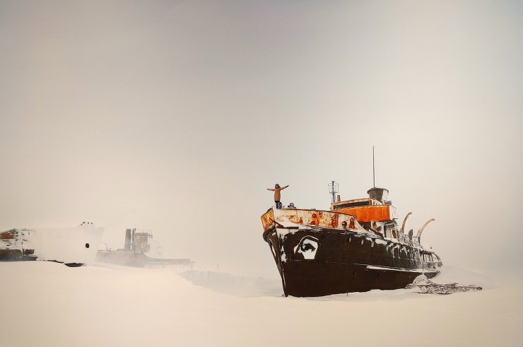 Piger spiller roller fra Titanic på en skibskirkegård et sted i Sibirien…