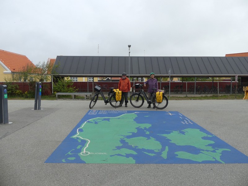 Vi var oppe ved 6-tiden, så vi kunne gøre rent og være færdige til kl. 9. Hugo Kristensen var på pletten og tog billeder ved vores afgang fra fyret og på stationen, hvor der er et fint Danmarkskort, vi kunne blive foreviget ved.