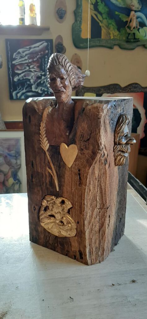 Egetræet er fra 1777 og fortæller nu historier efter en tur i hænderne på Henrik Woodpek.