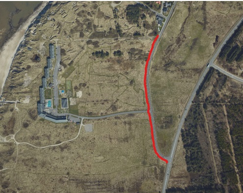 Byforums indsendte forslag til placering af cykel- gangsti ved Kystvejen.