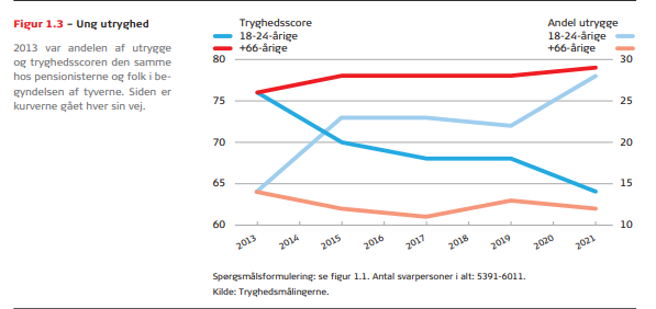 Der er ved at opstå en generationskløft mellem de unge og de ældre over 66 år, når det kommer til tryghed. For mens de ældre oplever en høj og stabil tryghed i hverdagen, går det stik modsat for de unge i starten af tyverne.