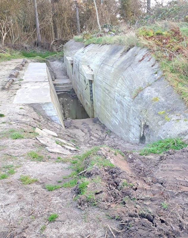 Ved udgravning til regnvandsføring langs hovedvejen i Løkken kom den store gravemaskine i efteråret forbi den gamle tyske mandsbunker R-622, der ligger i skovstykket langs vejen.