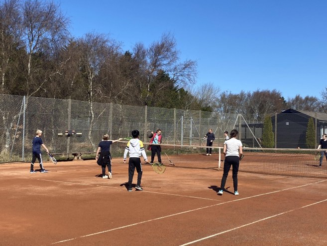 Hirtshals Tennisklub har inviteret elever og lærere fra Hirtshals Skolecenter indenfor på banerne, som et udendørs tilbud om ketsjersport, nu der alligevel skal være udendørs undervisning.