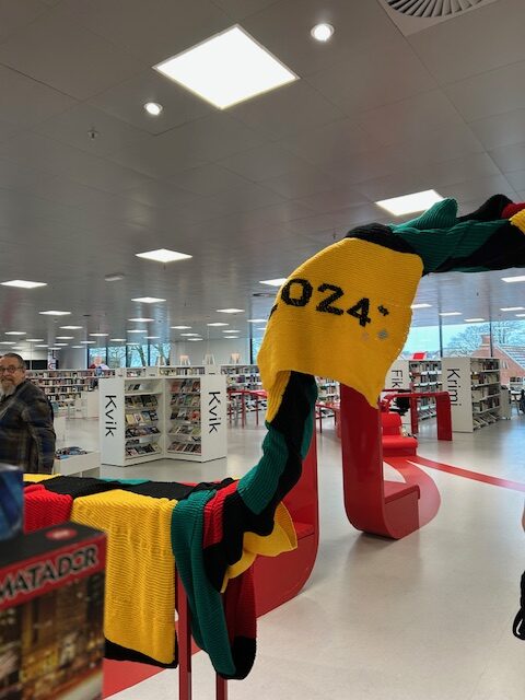 – Nu pryder det biblioteket i Hjørring, som et forhåbentligt godt blikfang for de kommende aktiviteter i Hirtshals i vinterferieugerne, med henblik på at lokke nysgerrige til Hirtshals, fortæller Anna-Stina Billund fra Anna Stina Strik.