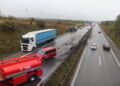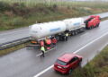 “Kl. 1533 anm om færdselsuheld på E 39 nordgående ca. 7 km syd for Hjørring. Lastbil har ramt autoværnet og anden vognbane er pt spærret. Politi og redning på vej til stedet. Kør forsigtigt.”