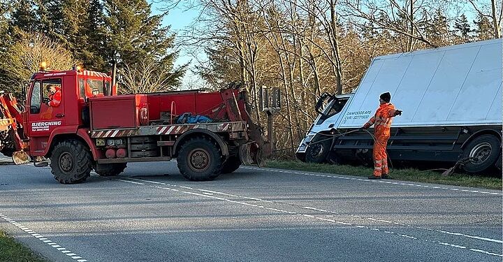 Hvor længe missionen med at få lastbilen tilbage på hjulene tog, vidstes ikke midt på eftermiddagen, og derfor er der ikke et estimat på, hvornår vejen blev eller bliver vejen åbnet op igen.