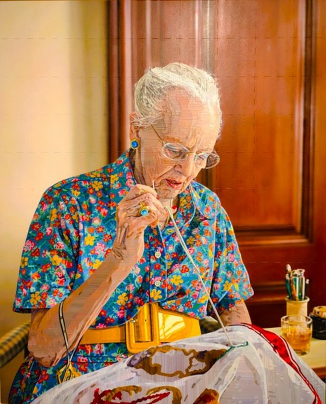 Allan Ottes portræt af den abdicerede Dronning, som nu har tid til al fordybelse i ”unyttige sysler”… Otte kommer selv og fortæller om værket…