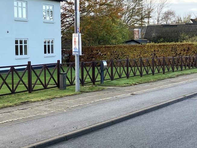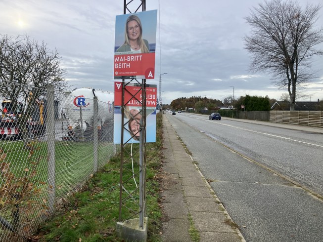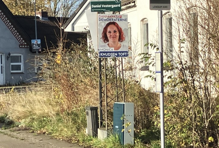 Undertegnede skribent og fotograf er ikke forarget og vil dog gerne opfordre til at få rettet op, så plakater ikke sidder ”lavere end 2,3 m direkte over fortov eller cykelsti målt fra nederste kant af valgplakaten”, som det blandt andet fremgår af loven.