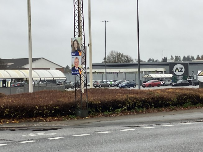 Der er ret mange valgplakater, som tilsyneladende vejer for meget. Så meget, at de synker og er faretruende tæt på fortov, cykelsti og vej. Tyngdekraften har fået overtaget – måske er det regnen eller tryk fra kandidaten ovenpå – eller måske er de nævnte valgplakater bare ikke fastgjort godt nok.