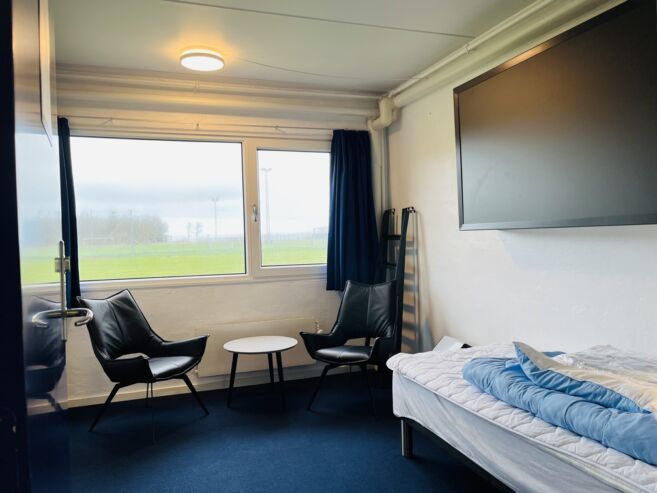 Ovenfor ses et af flere værelsestyper hos Hirtshals Idrætscenter.