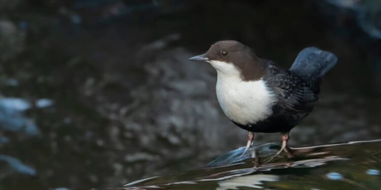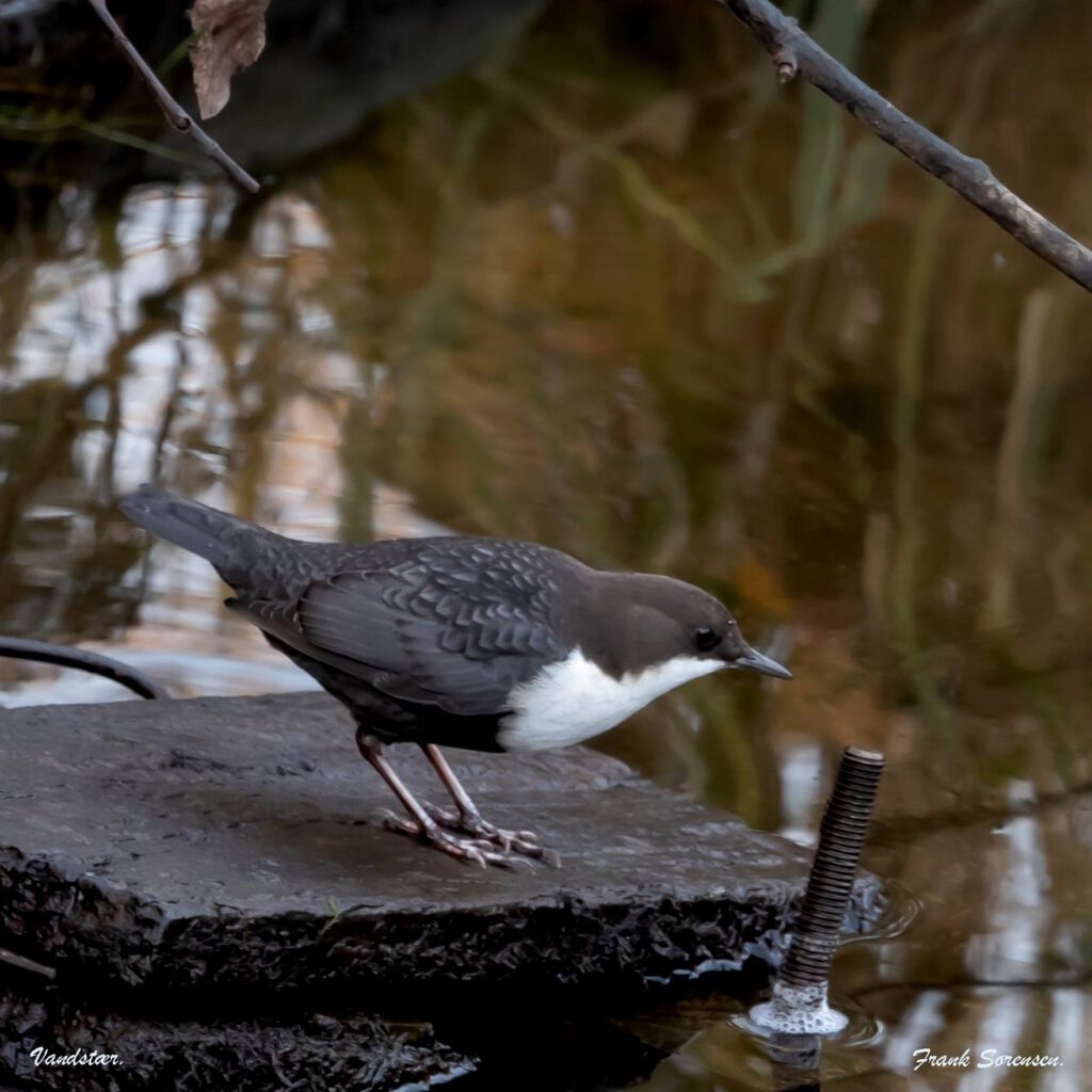 Vandstæren er dog på størrelse med en stær. Den er nemlig en buttet, sort og brun fugl med karakteristisk hvidt bryst og kort hale.