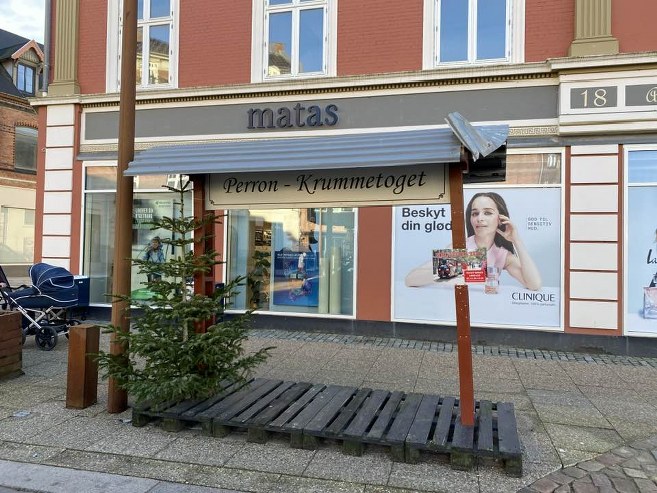 Krummetogets perron har taget taget skade, efter den blev påkørt af en varevogn. Perronen er desværre blevet skæv ved uheldet.