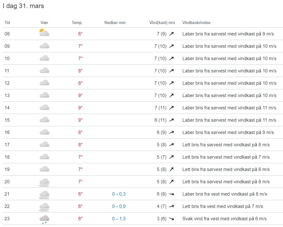 Vejret onsdag i og omkring Hirtshals ifølge YR.NO.