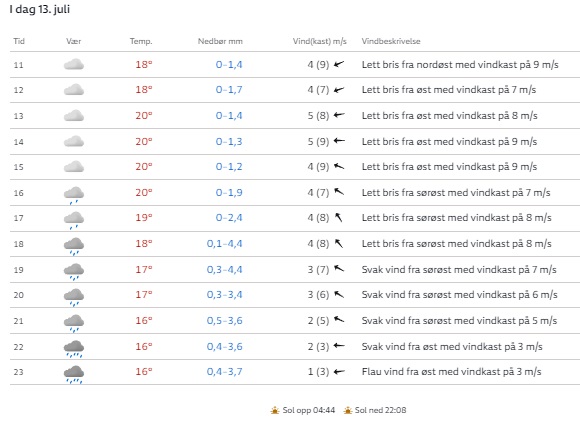 Lørdagens dugfriske vejrudsigt for Løkken ifølge den norske vejrtjeneste YR.NO.