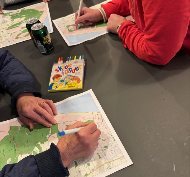 Inden mødet rigtigt begyndte delte Helene kort til deltagerne og bad dem indtegne deres ”bedste gå rute” eller ”bedste ride rute” på et kort. Oplysningerne skulle hun brug til at danne sig et overblik over hvor i skoven folk færdes meste.
