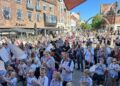 Fredag havde borgmester Søren Smalbro (V) så inviteret på rådhuspandekager og champagne, før spillerne én efter én og i samlet flok blev hyldet på scenen foran Rådhuset i Hjørring.