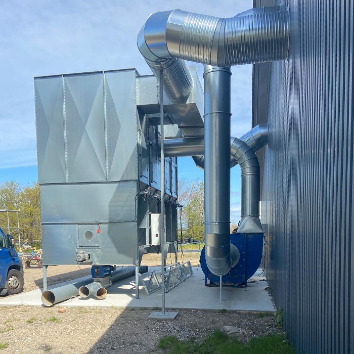 Der ud over er der monteret procesudsugning med filterløsning for at opretholde et godt indeklima. Udenfor er der monteret et anlæg, som leder spåner over i en silo, hvor der er tilsluttet et fyr, som giver varme til hele bygningen.