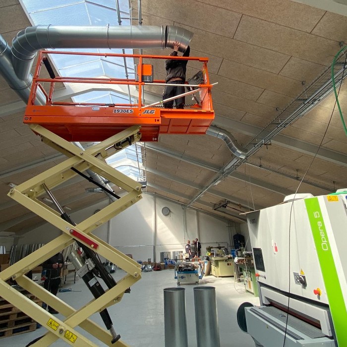 Flytningen har dog fornuftigvis ikke forhindret den fortsatte travlhed, idet Urban’s Vent-Teknik blandt rigtig meget andet har været i fuld gang hos Sindal Trappen. Her har man monteret et ventilationsanlæg med sug fra malerkabine, så de ansatte ikke skal arbejde i farlige dampe.