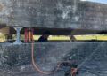 Knap 10,5 tons tysk beton og armeringsjern skulle løftes fri, så de gamle rustne hjørnestolper kunne skæres af og de nye galvaniserede stålfødder kunne sættes ind på plads og fastgøres. Den efterhånden noget trætte træ-inddækning, der var monteret af sikkerhedsmæssige årsager, kunne nu fjernes og solens stråler kunne igen efter 30 år lyse rummet op.