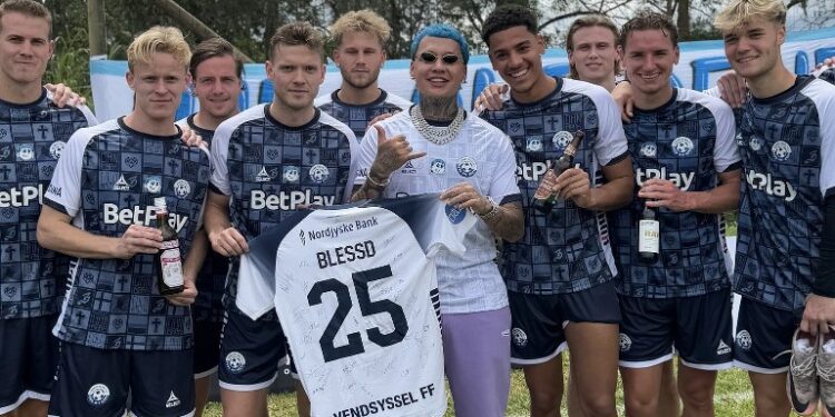 Der lagde en helt speciel gæst vejen forbi træningsanlægget, nemlig rapperen blessd, der som tidligere omtalt nu har en ejerandel i Vendsyssel FF.