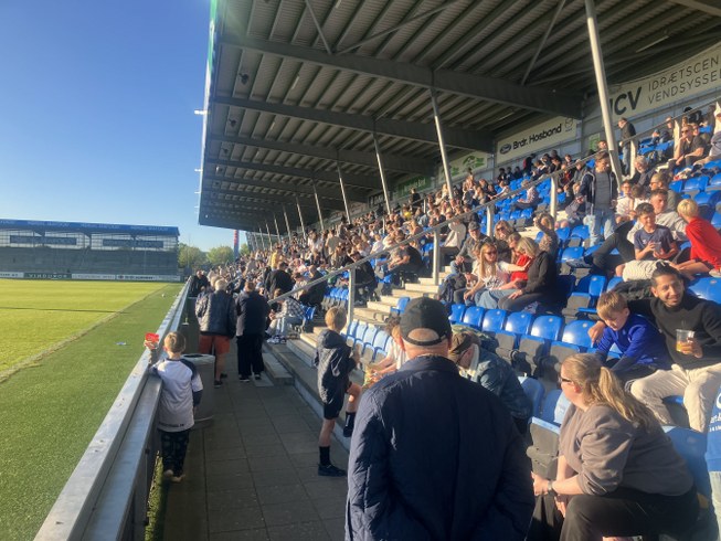 Der var 1593 tilskuere og heriblandt mange unge, som benyttede sig at det gode vejr, det gode selskab og fri bar i en hel time før kampen. De forholdsvis mange tilskuere og fangruppe skabte god stemning på stadion, og så skal publikum nok komme igen – også i 2. division.