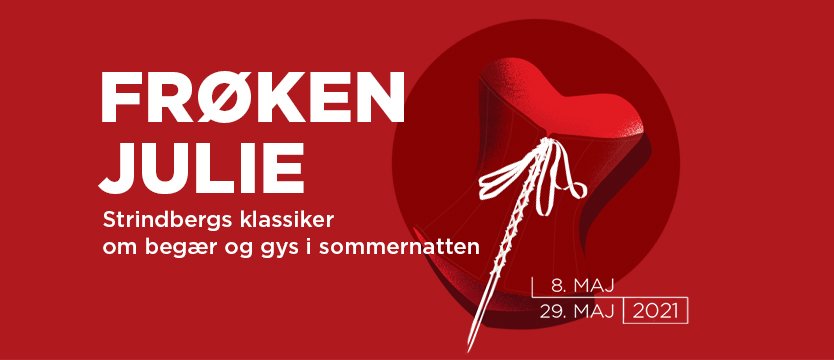 Premieren på Frøken Julie finder sted 8. maj kl. 15.00. Herefter spiller den de fleste dage kl. 19.30 – se spilleplan på hjemmesiden.