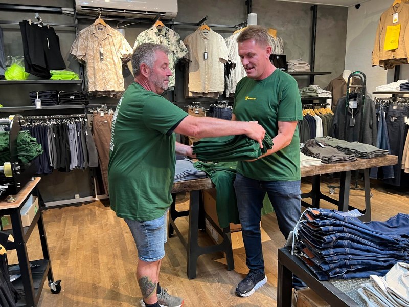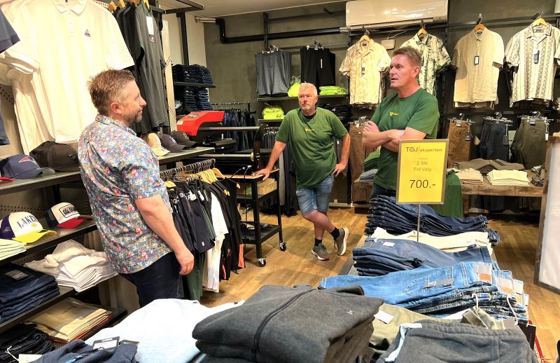 Denne onsdag formiddag, hvor solen oven i købet sendte strejf af lys og lunere luft over havnebyen, kiggede Jan-Iver Christiansen derfor ind til Rene Skjoldager og Claus Neve Olsen i den lokale butik Tøjeksperten.