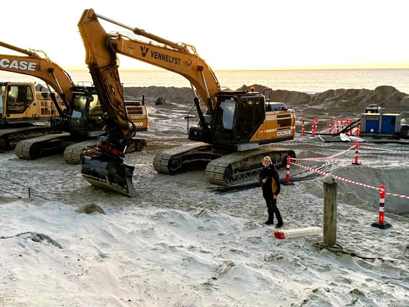 De helt rigtige vejrforhold er afgørende for Vennelysts arbejde på Pelles Strand ved Hirtshals Havn. Det har til gengæld også været perfekt de seneste dage med fralandsvind og roligt vejr