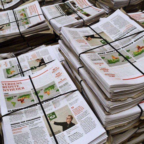 Frivillige over hele landet uddeler Verdens Bedste Nyheder, som er en avis, der fortæller om fremskridt og løsninger på klodens udfordringer.