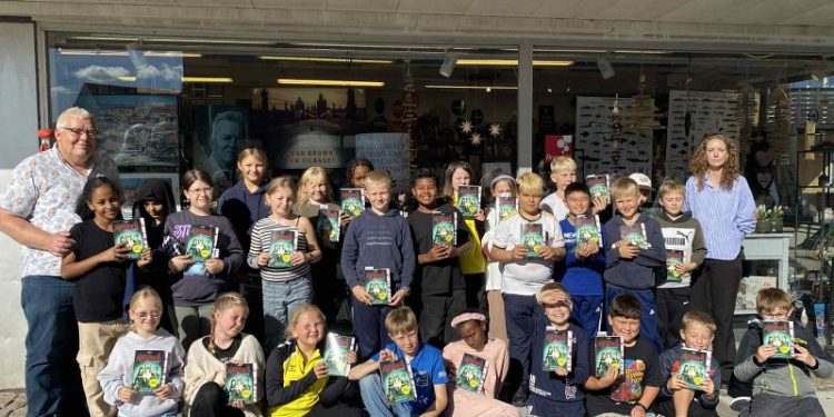 Årets bog er “Nøjeren 1: På Torturtur” af LG Jensen, Mikkel Egelund og Illustrator Emil Landgren fra Forlaget Alvilda. Torsdag har Bog & idé i Hirtshals derfor haft besøg af en masse glade, søde børn fra 4. A og 4. B på Hirtshals Skole samt skoleleder Anne Eltved og lærer Jacob Fage.
