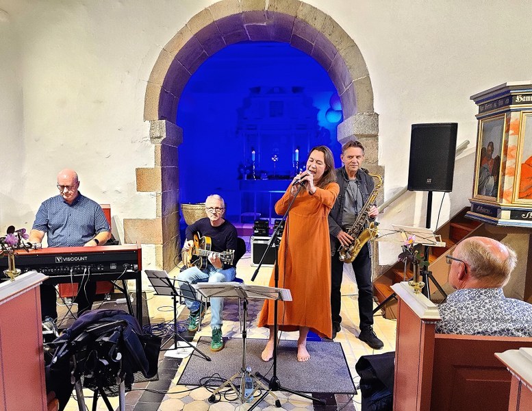 Sammen med Jakob Mygind på sax, Ole Bech på guitar og den lokale organist Niels Ole Sørensen tog Margrethe Grarup os med på en tur ud i gospelgenrens ypperste univers delikat krydret med respekt for de enkelte musikeres personlige udtryk…og jeg skal da love for, at det var flot…