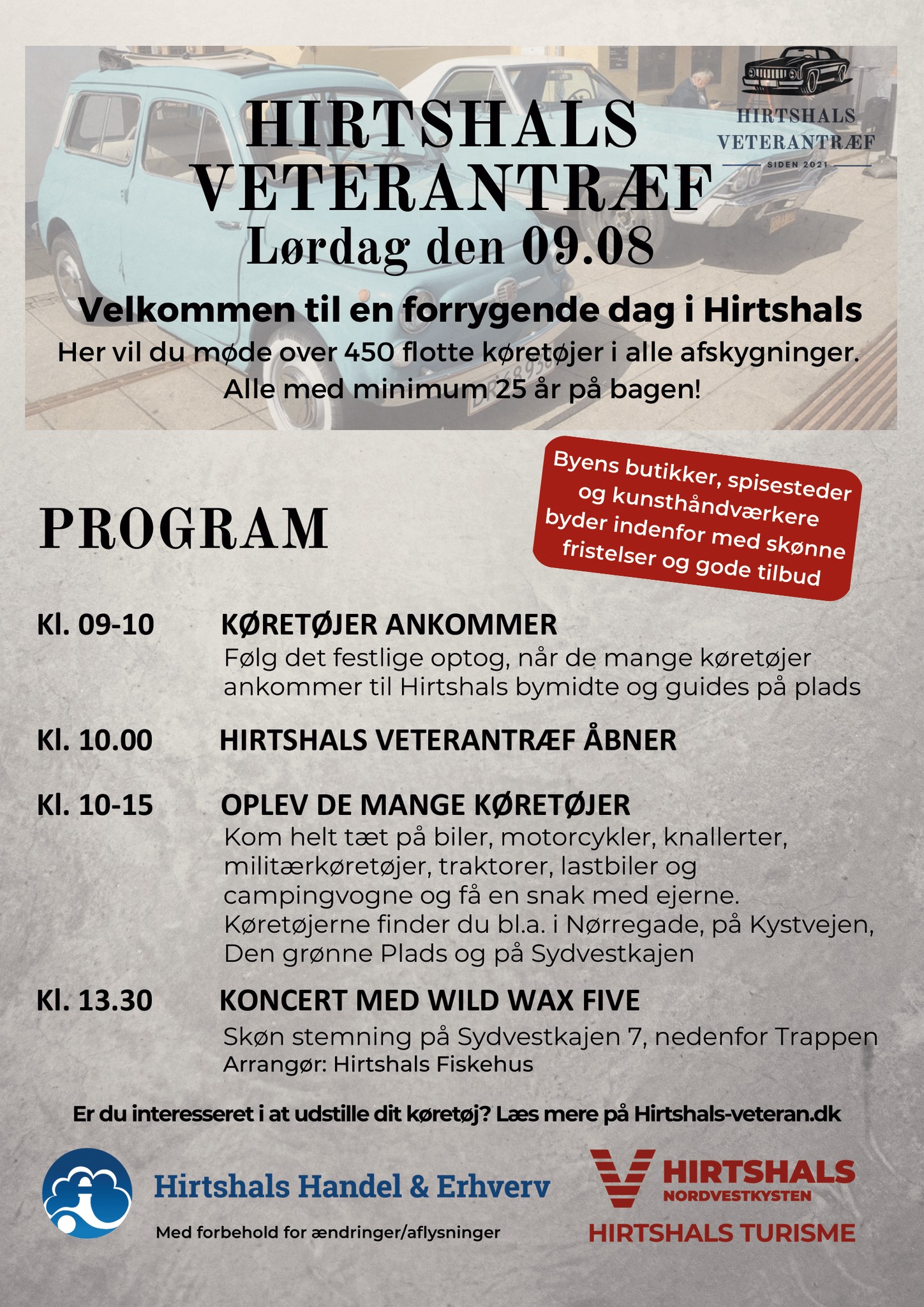 Hirtshals Veterantræf har i løbet af få år markeret sig som et af de største og mest populære blandt de mange, der efterhånden afholdes i Nordjylland. Ligesom opbakningen blandt de lokale er overvældende både med hensyn til frivillige og sponsorer, hvor sidstnævnte ikke mindst tæller SuperBrugsen med kassevis af rundstykker og ligeså mange vand fra Netto. Endelig er de frivilliges let genkendelige og fine grønne trøjer i år sponsoreret af butikken Havkyst, mens markedsdirektør Jens Kjærsgaard Nielsen igen i år lægger lokaler til i den tidligere Jyske Bank, som i marts flyttede fra Nørregade til Banegårdspladsen.