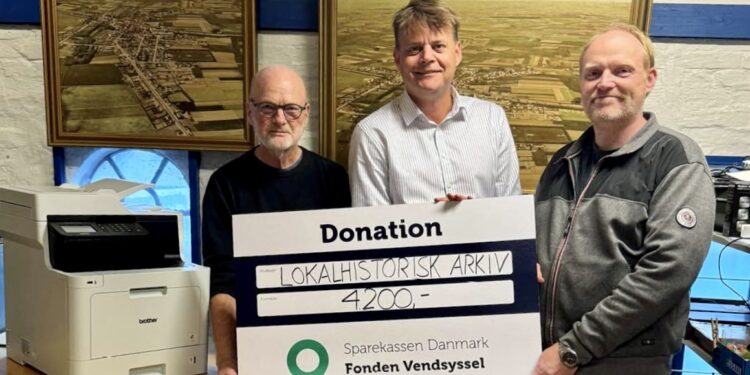 Derfor har Sparekassen Danmark Fonden Vendsyssel været på besøg med en fin donation hos Lokalhistorisk arkiv i Vrå.