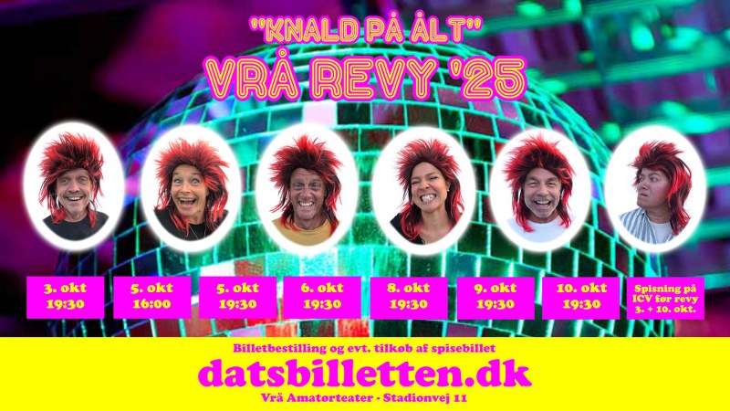 Sammen med det dygtige revyorkester og den store flok af frivillige kræfter både foran og bagved scenen er han klar til at puste liv i 80’er-klassikerne plus det løse, så publikum kan få endnu et brag af en Vrå Revy.