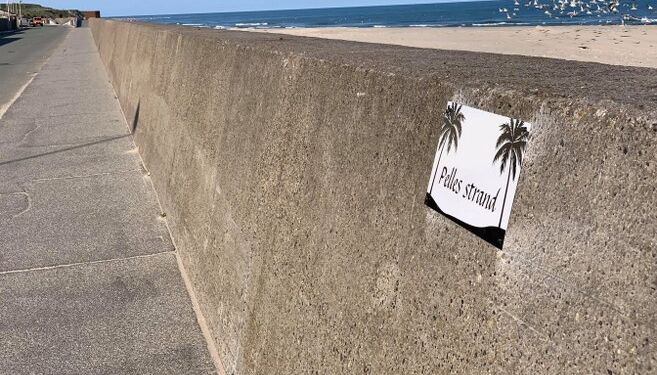 Langt om længe har strækningen, der aldrig blev blåstemplet af Hirtshals Havn, nu fået et uofficielt skilt med påskriften Pelles Strand. Det er såmænd lokale Erik Eriksen, som dermed på eget initiativ har bidraget positivt til wayfinding for havnebyens gæster.